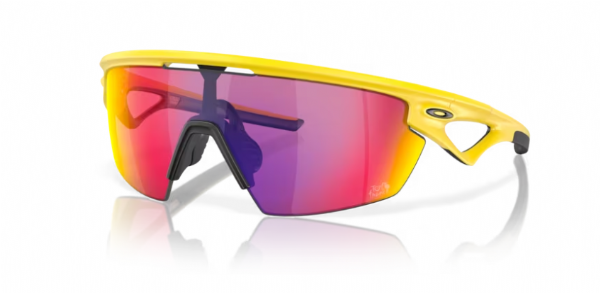 De Oakley Sphaera TDF Matte Yellow met zijn speciale kleur voor de Tour de France is een sportieve zonnebril, speciaal ontworpen voor actieve buitensporters. Dankzij het grote, gebogen lensontwerp biedt hij een extra breed zichtveld en zeer goede bescherming tegen zon en wind. Het lichte montuur en de antislip-oortips zorgen voor een comfortabele en stevige pasvorm, zelfs bij intensief gebruik.