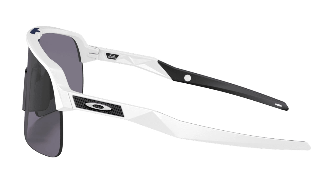 De Oakley Custom Sutro Lite Matte White/ Prizm Black is een zelfontworpen sportbril. De zwarte lens versterkt contrast en kleuren, ideaal voor tijdens het zonnige en lichtbewolkte weertype. Met een lichtdoorlaatbaarheid van 13% behoort deze bril tot categorie 3.