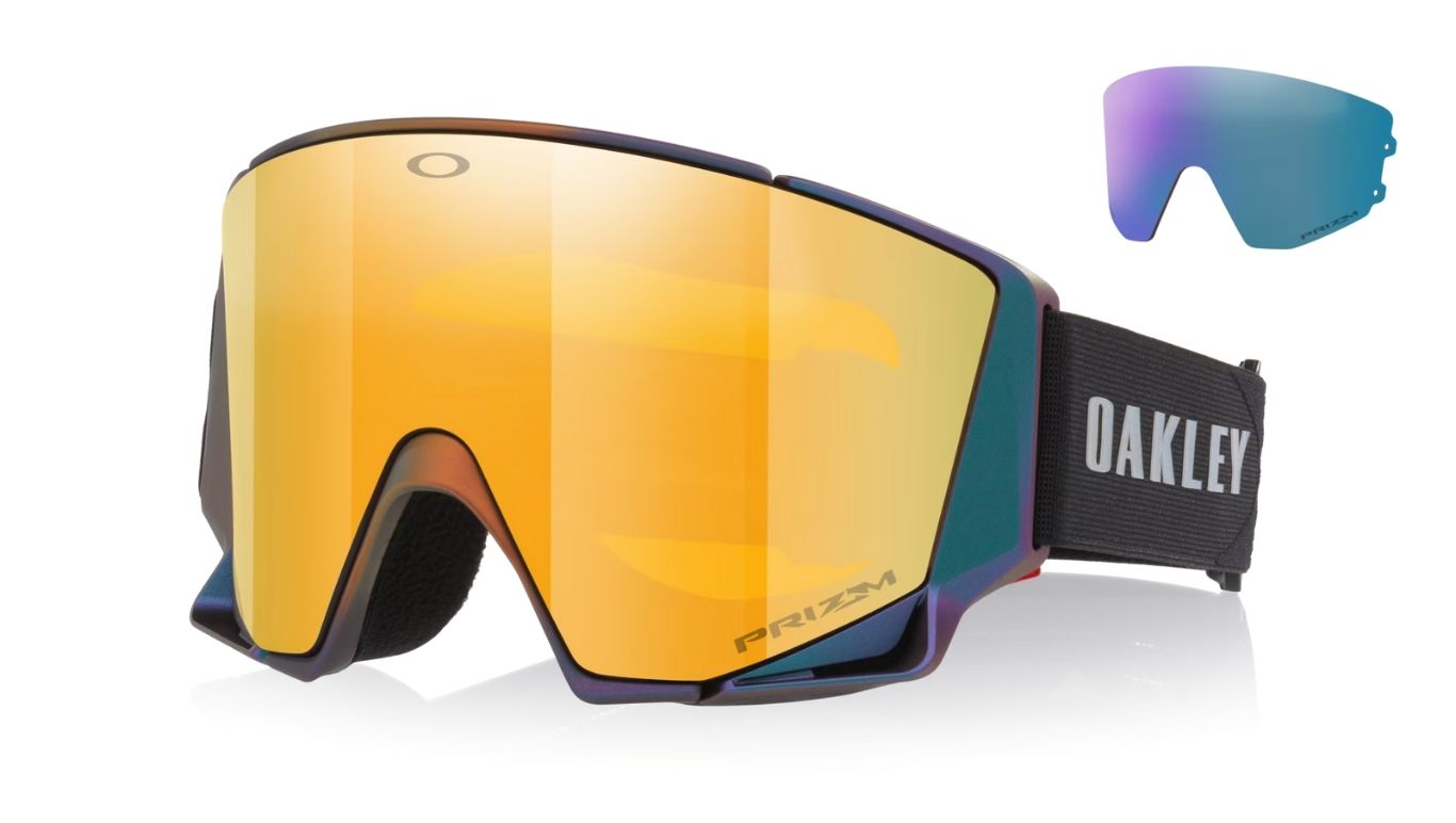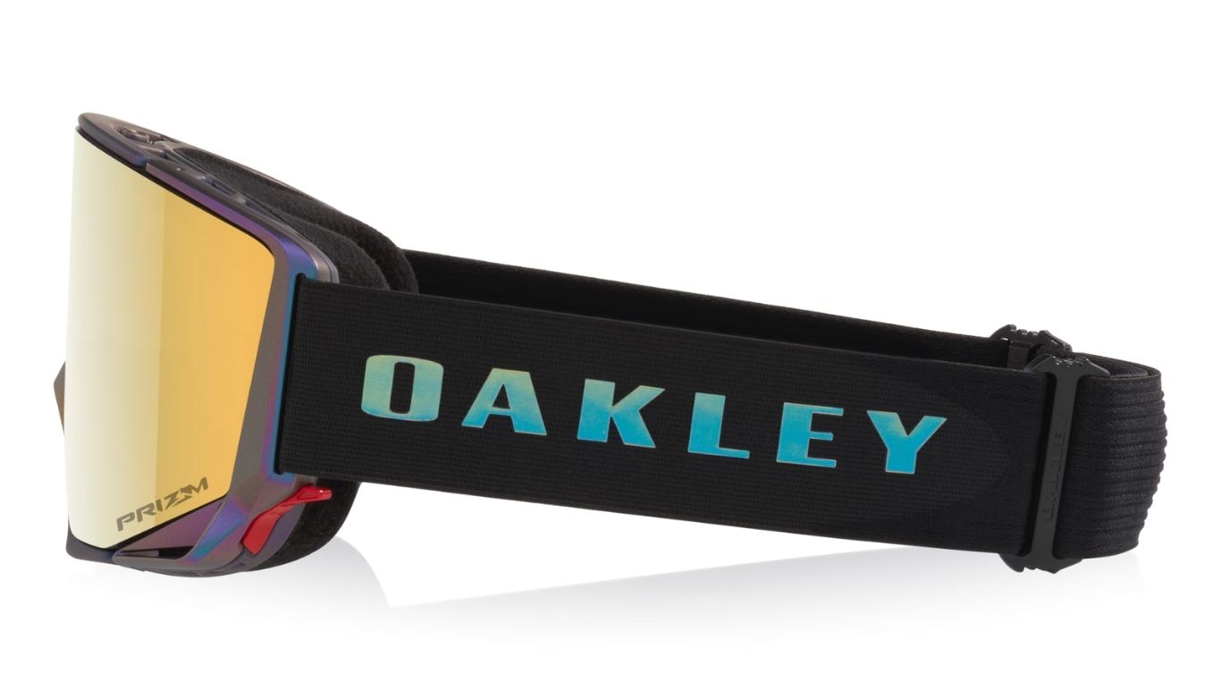 De Oakley Flow Scape M 50th Anniversary Metallic Black Gold/ Prizm 24K & Prizm Iced is ontworpen om wintersporters een ongekend breed gezichtsveld en superieur comfort te bieden. Dankzij de innovatieve conische lens, een primeur in de wintersport industrie, mis je niets van wat er op de piste gebeurt. Bovendien zorgt de nieuwe Vision Rapt (VR) face foam ervoor dat de bril perfect aansluit en je optimaal profiteert van het uitgebreide blikveld. De lichtdoorlaatbaarheid van de 24K en de Iced lens is respectievelijk 12% en 38%. Hierdoor heb je direct een categorie 3 en een categorie 2 lens!